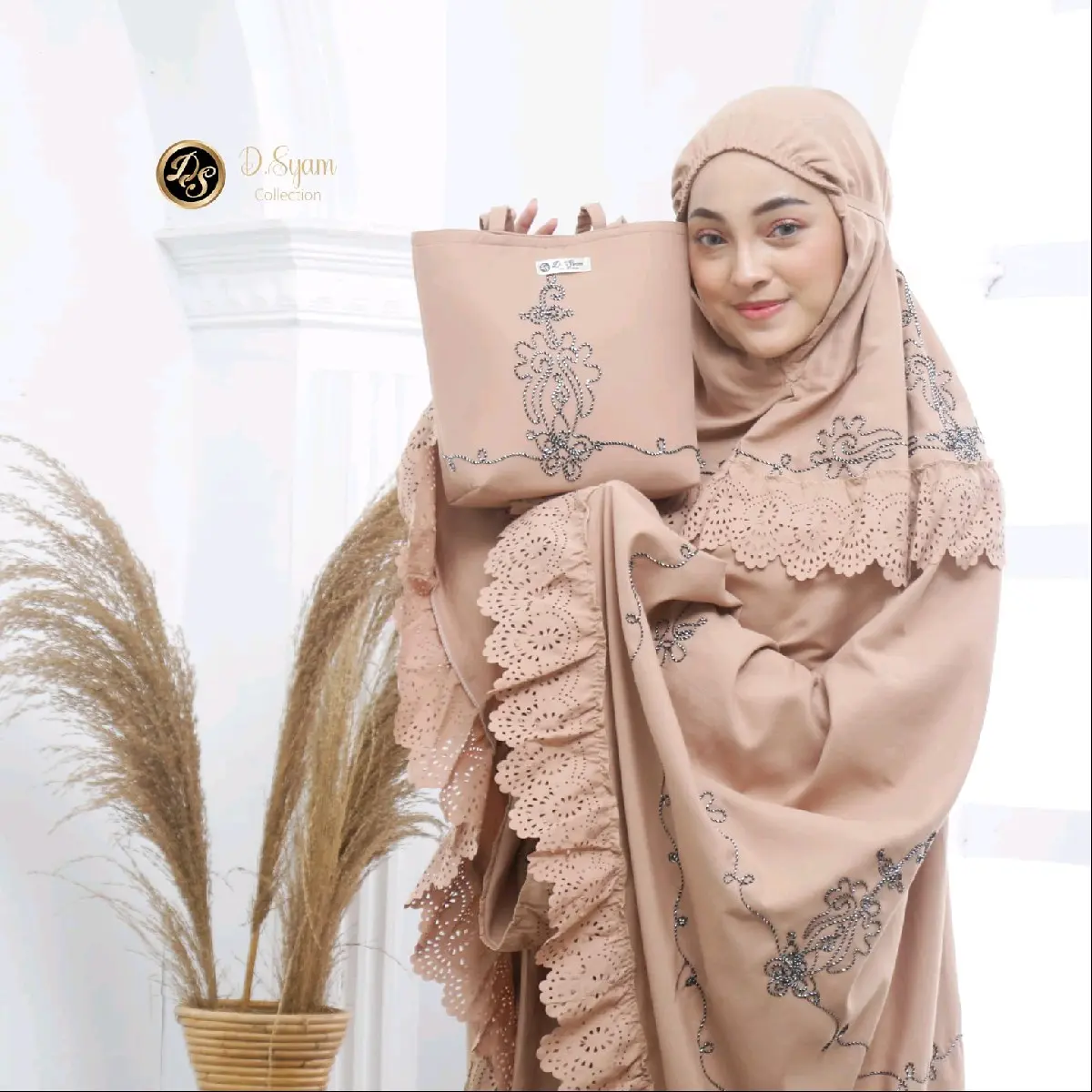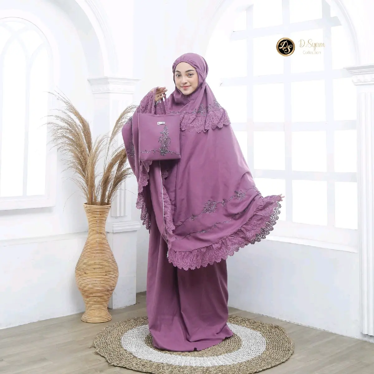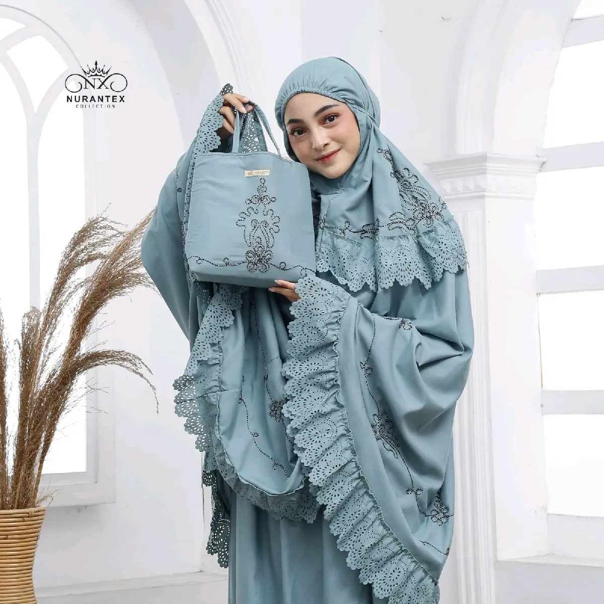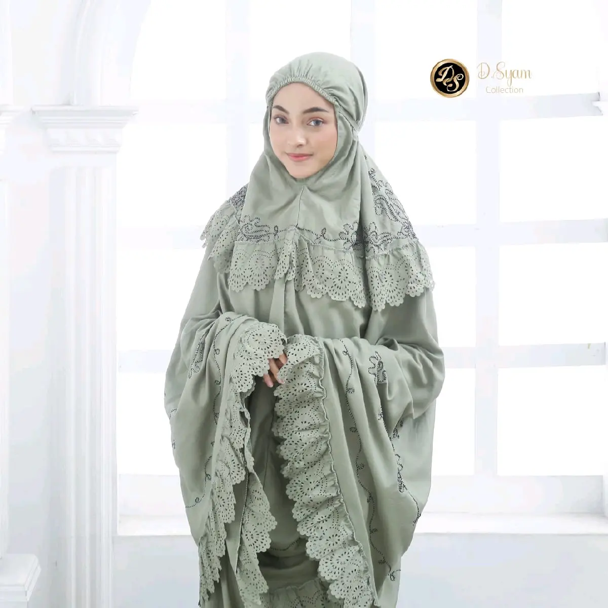• Desain renda mewah yang memberikan kesan anggun serta elegan saat beribadah.